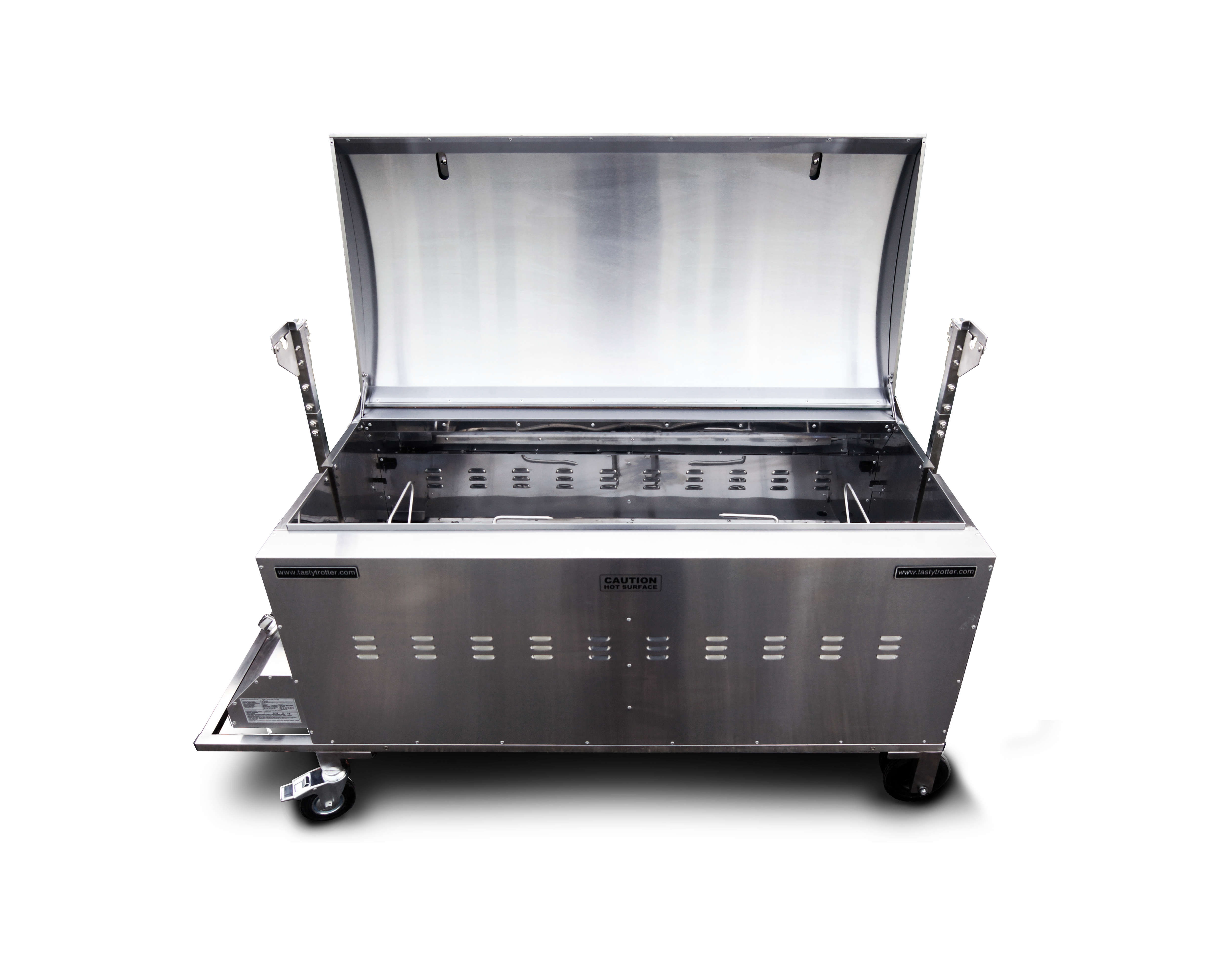 • Double skinned body for strength and heat insulation. Can cook a full pig up to 80 kilos (approx. 7 hours cooking time)